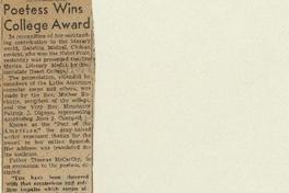 Poetess wins College Award. [artículo]