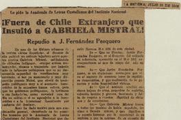 Fuera de Chile extranjero que insultó a Gabriela Mistral!. [artículo]
