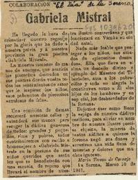 Gabriela Mistral [artículo] / María Teresa de Cornejo. El Día (Diario : La Serena, Chile)-- mar. 10, 1947, s/n. .