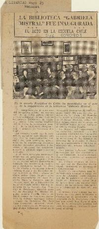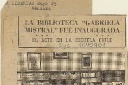 La Biblioteca "Gabriela Mistral" fue inagurada El acto en la Escuela Chile. [artículo]