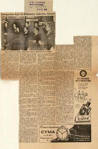 Inauguróse ayer la Biblioteca Gabriela Mistral. [artículo] Los Andes (Diario : Mendoza, Argentina)-- may. 26, 1948, p. s/n. .