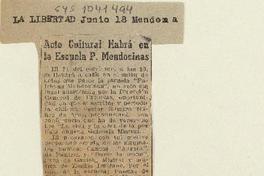 Acto cultural habrá en la Escuela P. Mendocinas. [artículo]