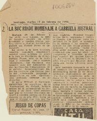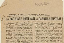 La BBC rinde homenaje a Gabriela Mistral. [artículo] feb. 19, 1946, p. s/n. .