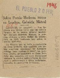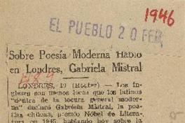 Sobre poesía moderna habló en Londres, Gabriela Mistral. [artículo] El Pueblo (Diario : Montevideo, Uruguay)-- feb. 20, 1946, s/n. .