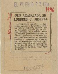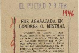 Fue agasajada en Londres G. Mistral. [artículo] El Pueblo (Diario : Montevideo, Uruguay)-- feb. 23, 1946, p. s/n. .