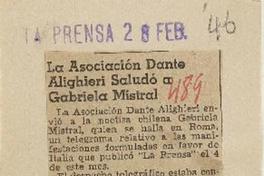 La Asociación Dante Alighieri saludó a Gabriela Mistral [artículo].