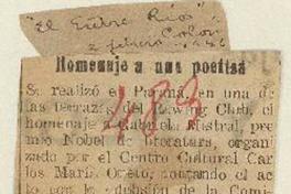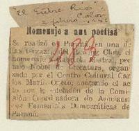Homenaje a una poetisa. [artículo] El Entre Ríos (Diario : Colón, Entre Ríos, Argentina)-- feb. 2, 1946, p. s/n. .