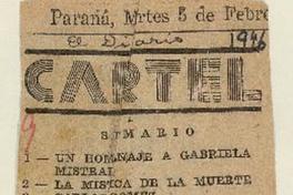 Cartel un homenaje a Gabriela Mistral. [artículo] : El Diario (Diario : Paraná, Argentina)-- feb. 5, 1946, p. s/n. .