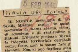 Il nobile messaggio di Gabriella Mistral. [artículo] L'Italia del Popolo (Diario : Argentina)-- feb. 5, 1946, p. s/n. .