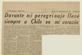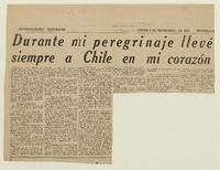 Durante mi peregrinaje llevé siempre a Chile en mi corazón [artículo] Alberto valencia.