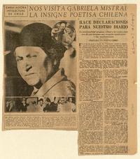 Nos visita Gabriela Mistral, la insigne poetisa chilena [entrevista]. [artículo] : El Pueblo (Diario : Montevideo,Uruguay)-- ene. 12, 1938, p. s/n. .