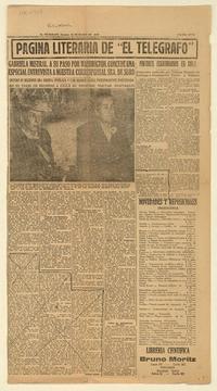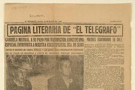 Gabriela Mistral, a su paso por Washington, concede una entrevista especial a nuestra corresponsal Sra. de Suro [entrevista] / [artículo] : Piedad Levi Castillo de Suro. El Telégrafo (Diario : Guayaquil, Ecuador)-- mar. 24, 1946, p. 7. .