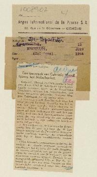 Een toespraak van Gabrielle Mistral tijdens het Nobelbanket. [artículo] De Spectator (Diario : Bruselas, Bélgica)-- jun. 13, 1946, p. s/n. .