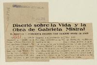Disertó sobre la vida y la obra de Gabriela Mistral. [artículo]