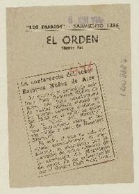 La Conferencia del señor Ramírez Núñez de Arce [artículo]. El Orden (Diario : Santa Fé, Argentina)-- jun. 6, 1946, s/n. .