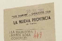 La escritora María Rosa gonzález [artículo]. La Nueva Provincia (Diario : Bahía Blanca, Argentina)-- jul. 10, 1946, p. s /n. .