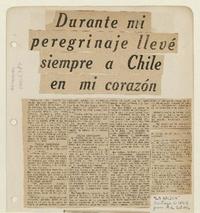 Durante mi peregrinaje llevé siempre a Chile en mi corazón [entrevista] / [artículo] : Alberto Valencia. La Nación (Diario : Santiago, Chile)-- sept. 9, 1954, p. s/n. .