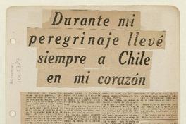 Durante mi peregrinaje llevé siempre a Chile en mi corazón [entrevista] [artículo] : Alberto Valencia.
