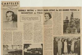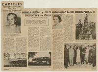 Gabriela Mistral y Dulce Maíra Loynaz, las dos grandes poetisas, se encuentran en Italia [entrevista] / [artículo] : Osvaldo Valdés de la Paz. Carteles (Revista : Cuba)-- no. 38, (septiembre 1951), p. 78-80. .