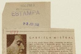 Gabriela Mistral. [artículo] Estampa (Revista)-- jun. 3, 1946, p. s/p. .