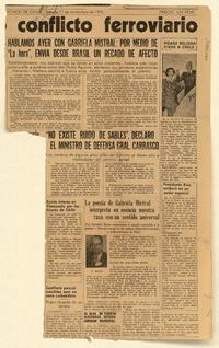 Hablamos ayer con Gabriela Mistral, por medio de "La Hora", envía desde Brasil un recaso de afecto. [artículo] La Hora (Diario : Santiago, Chile)-- nov. 17, 1945, p. s/n. .