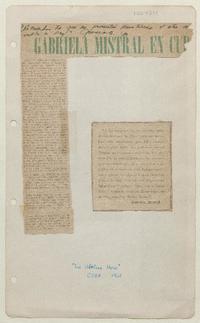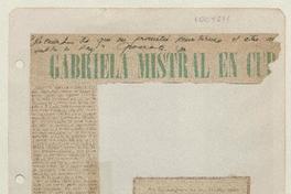 Gabriela Mistral en Cuba. [artículo] / La Última Hora (Diario : Cuba)-- 1952, p. s/n. .