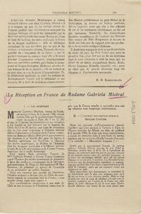 La Réception en France de Madame Gabriela Mistral [artículo].