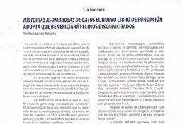 Historias asombrosas de gatos : El nuevo libro de fundación adopta que beneficiará felinos discapacitados [artículo].