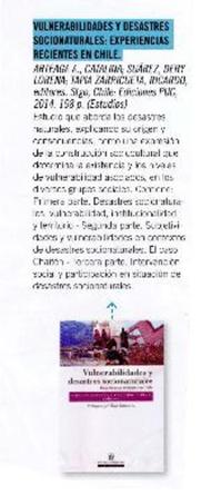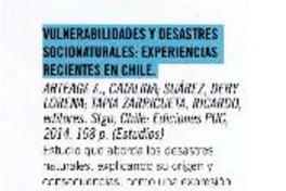 Vulnerabilidades y desastres socionaturales: Experiencias recientes en Chile. [artículo]