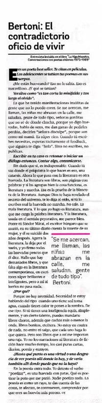 Bertoni: El contradictorio oficio de vivir [entrevista] [artículo] : Cristóbal Gaete.
