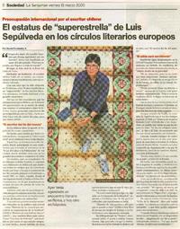 El estatus de "superestrella" de Luis Sepúlveda en los círculos literarios europeos. [artículo] / Por Daniel Fernández A. La Segunda (Diario : Santiago, Chile)-- mar. 13, 2020, p. 2. .