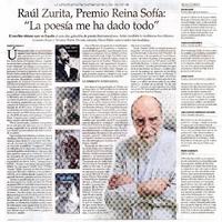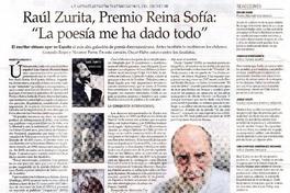 Raúl Zurita, Premio Reina Sofía: "La poesía me ha dado todo" [artículo] Roberto Careaga C.