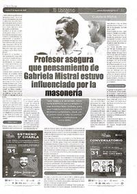 Profesor asegura que pensamiento de Gabriela Mistral estuvo influenciado por la masonería [artículo] / Nelson Santibañez. El Longino (Diario : Iquique, Chile)-- Agos. 27, 2020, p. 11. .