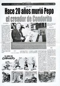 Hace 20 años murió Pepo, el creador de Condorito [artículo] José Cancino N. El Longino (Diario : Iquique, Chile) -- jul. 18. 2020, p. 15. .