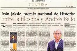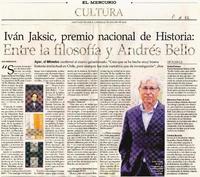 Iván Jaksic, premio nacional de Historia : Entre las filosofía y Andrés Bello [artículo] Juan Rodriguez M.