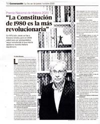 Premio Nacional de Historia 2020 "La Constitución de 1980 es la más revolucionaria" [entrevista] / [artículo] : Boris Bezama. La Segunda (Diario : Santiago, Chile)-- oct. 01, 2020, p. 22-23. .