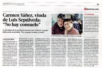 Carmen Yánez, viuda de Luis Sepúlveda: "No hay consuelo" [artículo] / Andrés Gómez Bravo. La Tercera (Diario : Santiago, Chile)-- oct. 21, 2020, p. 25. .