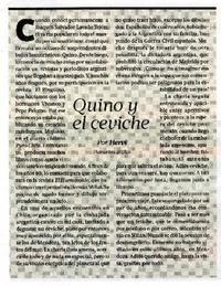 Quino y el ceviche [artículo] / Por Hervi. La Tercera (Diario : Santiago, Chile)-- oct. 1, 2020, p. 25. .