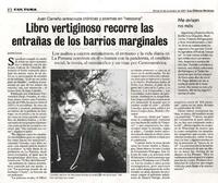 Libro vertiginoso recorre las entrañas de los barrios marginales [artículo] Jazmín Lolas.