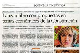 Lanzan libro con propuestas en temas económicos de la Constitución [artículo] / Ramón Rivera El Mercurio (Diario : Santiago, Chile)-- dic. 10, 2020, p. B5. .