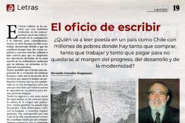 El oficio de escribir [artículo] / Bernardo González Koppmann. Talca (Diario : Talca, Chile)-- abr. 4, 2021, p. 19. .