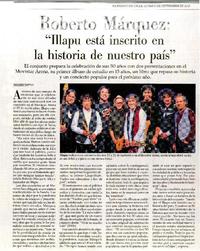 Roberto Márquez, "Illapu está inscrito en la historia de nuestro país" [artículo] Raimundo Flores S.
