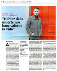Hablar de la muerte nos hace valorar la vida" [entrevista] / [artículo] : Constanza León A. La Segunda (Diario : Santiago, Chile)-- sep. 3, 2021, p. 18-19. .