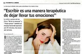 "Escribir es una manera terapéutica de dejar llevar tus emociones" [artículo] / Paulina González M. Las Últimas Noticias (Diario : Santiago, Chile)-- abr. 11, 2021, p. 24. .