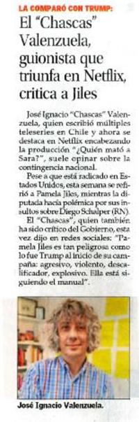 El "Chascas" Valenzuela guionista que triunfa en Netflix, critica a Jiles [artículo]. El Mercurio (Diario : Santiago, Chile)-- abr. 10, 2021, p. C4. .