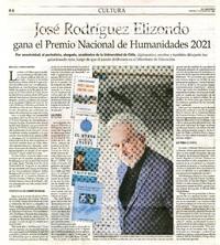 José Rodríguez Elizondo gana el Premio Nacional de Humanidades 2021 [artículo] / Iñigo Díaz e Isidora Montero. El Mercurio (Diario : Santiago, Chile)-- Ago. 27, 2021, p. A6. .