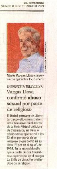 Vargas Llosa confirmó abuso sexual por parte de religioso. [artículo] El Mercurio (Diario : Santiago ,Chile)-- sep. 11, 2021, p. A8. .
