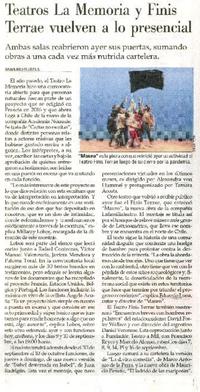 Teatros La Memoria y Finis Terrae vuelven a lo presencial [artículo] Raimundo Flores.