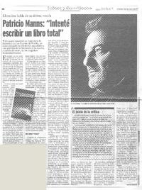 Patricio Manns, "Intenté escribir un libro total" [artículo] / Andrés Gómez B. La Tercera (Diario : Santiago, Chile)-- jun. 6, 1999, p. 46 .