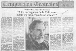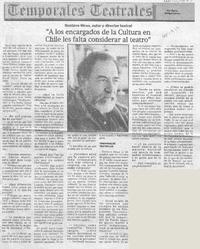 "A los encargados de la Cultura en Chile les falta considerar al teatro" [entrevista] / [artículo] : Marta Zúñiga Gatica. El Llanquihue (Diario : Puerto Montt, Chile)-- jul. 27, 1998, p. A13. .